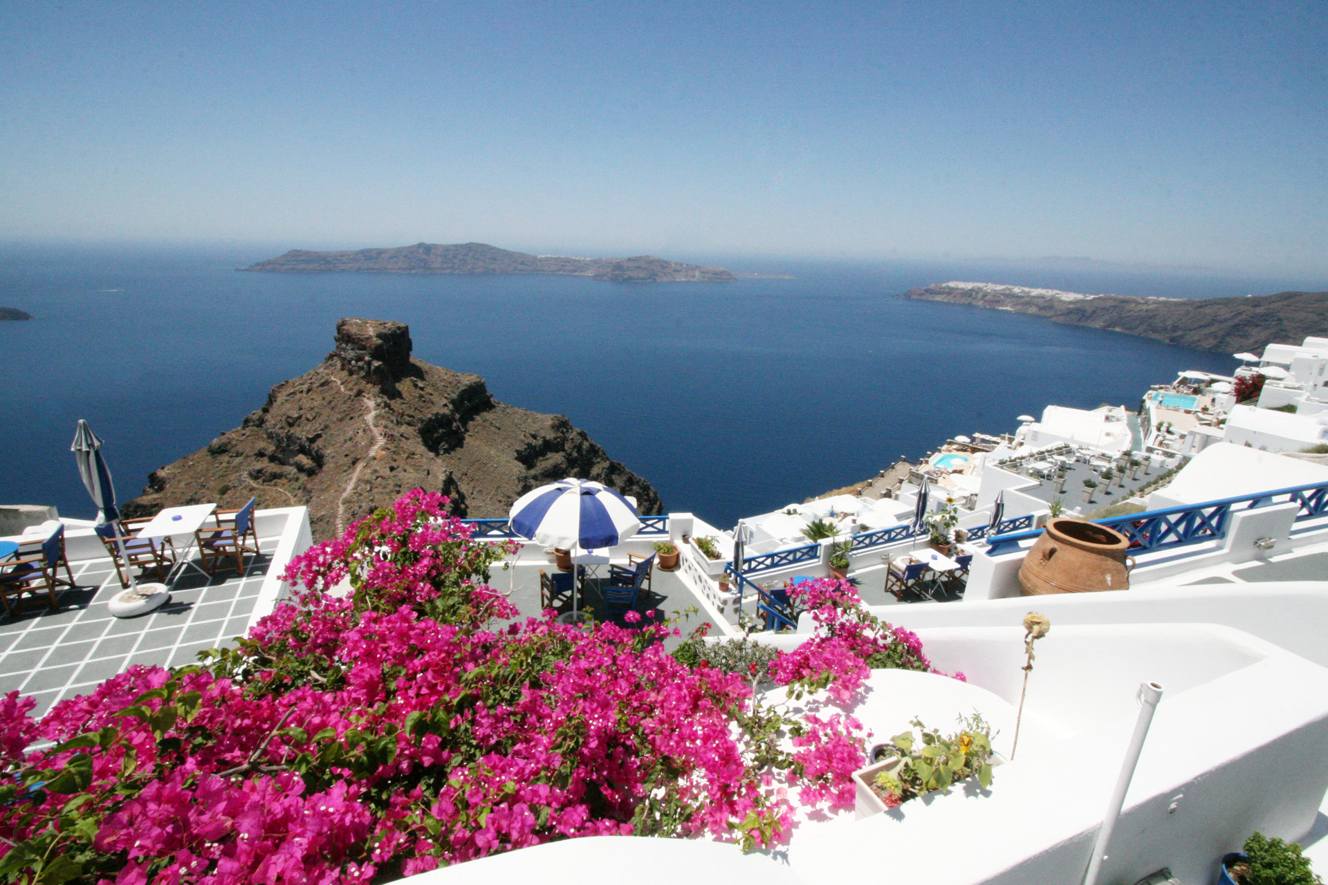 Annio hotel and apartments complex lies at the magnificent settlement of Imerovigli. The apartments are built at the highest spot of the Caldera rim, offering a spectacular view to Skaros Castle, volcano and Thirasia.